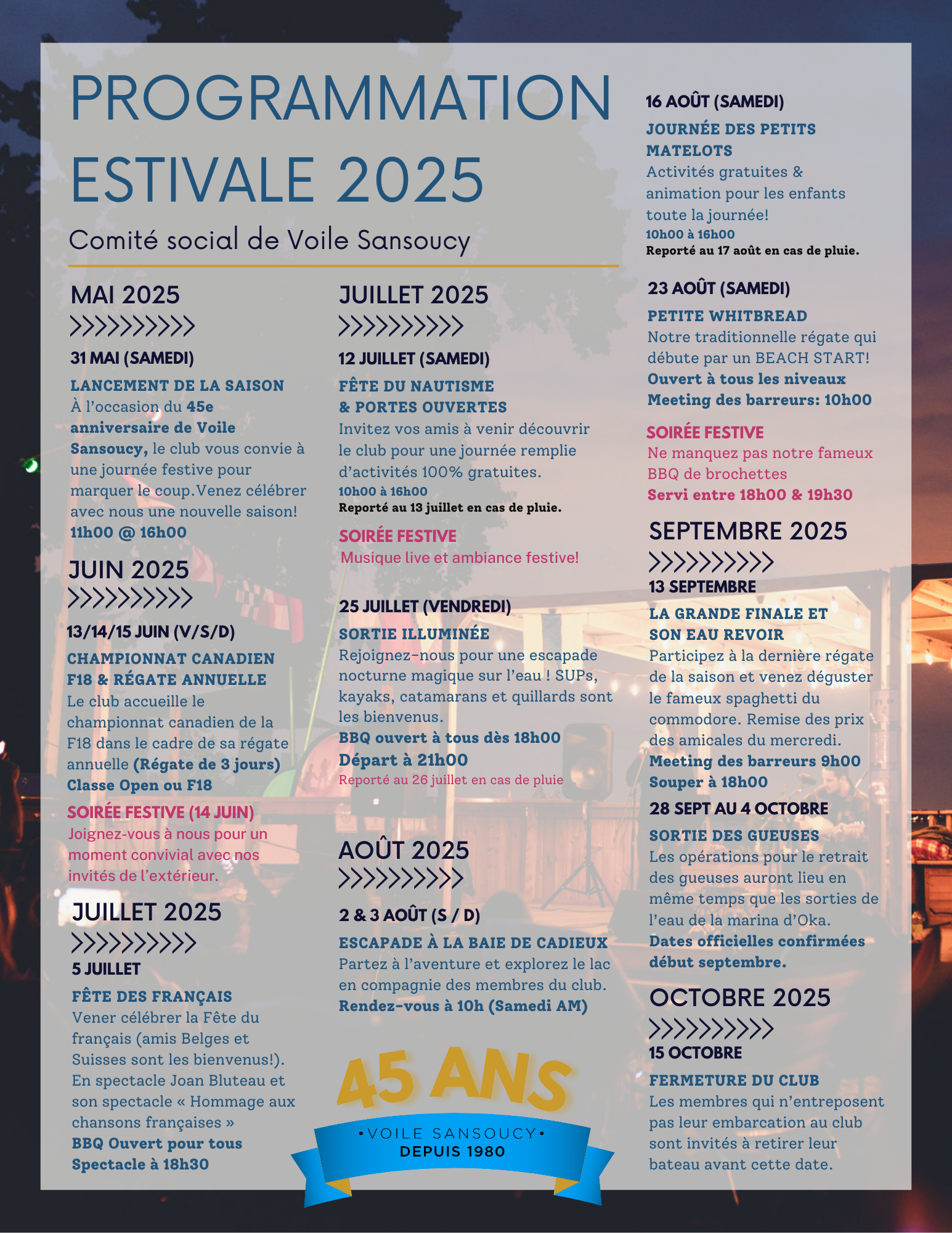Vous recherchez une embarcation pour naviguer en solitaire à deux ou à trois personnes? Le catamaran L a été spécialement pensé pour passer du bons temps sur l’eau sans les entretiens annuel. Ses coques en polyéthylène offre une fiabilité maximum ainsi que son design moderne offre des performances grisantes. Le L se distingue des autres embarcations de la même taille avec un renfort spécial aux poutres et un dièdre positif! Il est même possible d’ajouter une 3e voile (spinnaker ou gennaker) afin d’atteindre de meilleures sensations autant en petit que en grand vent.