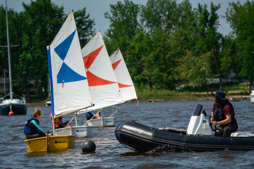 Les programmes de voile sportive exigent habituellement que les participants acquèrent leur propre embarcation. Afin de rendre notre programme plus accessible, nous incluons la location du bateau dans le prix d’inscription, et ce pour toute la durée du programme — même en dehors des heures d’encadrement.